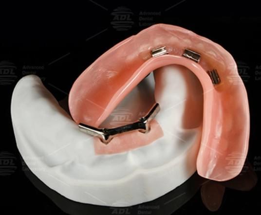 Sobredentadura con barra microfresada (versión más avanzada con ajuste perfecto gracias a tecnología CAD-CAM)