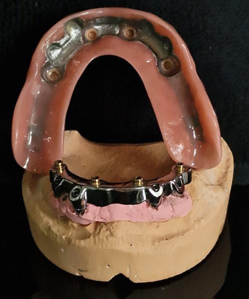 Sobredentadura con barra (estructura metálica sobre la que se retiene la prótesis)