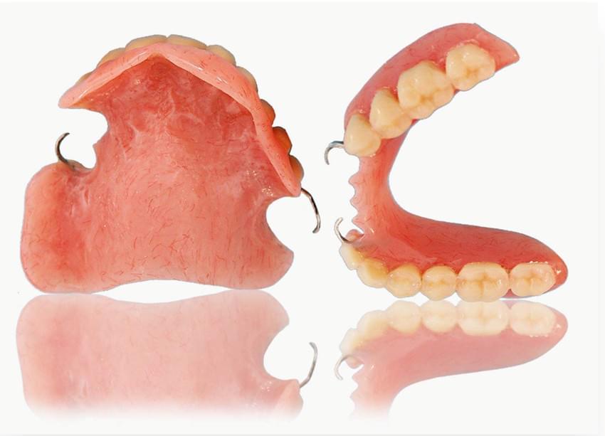 Es una prótesis confeccionada con una base de resina acrílica con dientes prefabricados que sustituye piezas ausentes y se apoya en encía y, si procede, en dientes remanentes con retenedores de resina o metálicos simples.